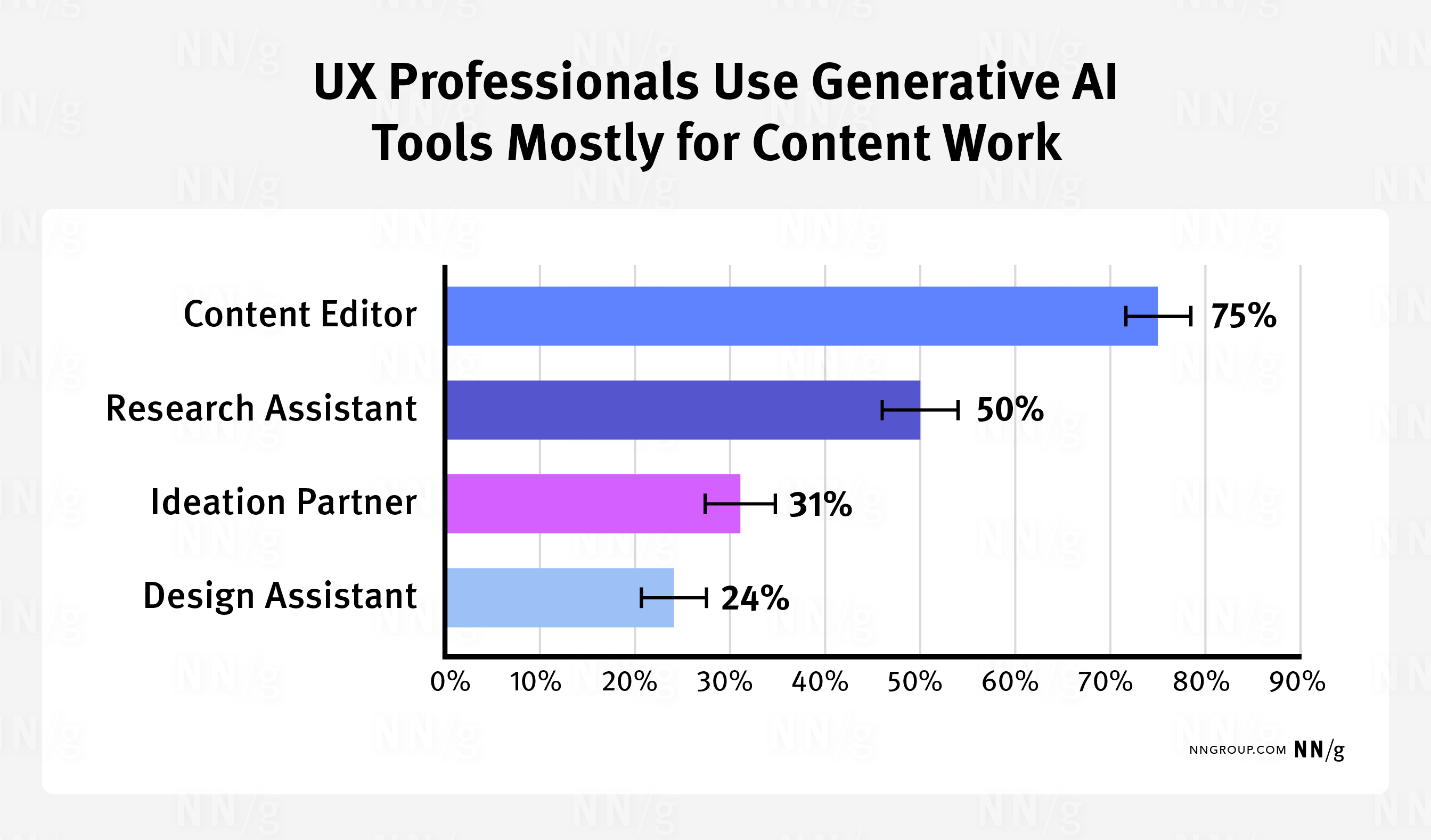 UX 专业人士报告在以下情况中使用生成型 AI 进行桌面研究。